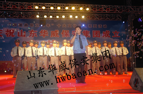 晚上八時(shí)許,為展示華威保安企業(yè)形象和風(fēng)采,慶祝華威保安集團(tuán)成立,集團(tuán)公司在沂河廣場(chǎng)舉行了專場(chǎng)文藝演出和煙火晚會(huì),該晚會(huì)被列入由曲阜市委宣傳部、曲阜市總工會(huì)、市文化廣電新聞出版局主辦“和諧曲阜文化年”十大文化廣場(chǎng)系列活動(dòng)之一,近千名群眾觀看了演出,晚會(huì)首次推出了集團(tuán)自己的華威之歌《忠誠(chéng)》,激昂慷慨的旋律預(yù)示著華威保安強(qiáng)勁的發(fā)展態(tài)勢(shì),保安員工自編自演的精彩節(jié)目贏得了群眾的陣陣掌聲,晚會(huì)結(jié)束后,近半個(gè)小時(shí)的煙火燃放,將文藝晚會(huì)推向了另一個(gè)高潮。