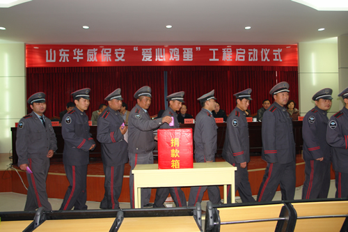 為了向生活在貧困線以下的兒童奉獻一片愛心,讓貧困家庭的孩子們每天能吃上一個雞蛋,公司號召全體員工,通過啟動捐獻“愛心雞蛋”工程,以實際行動讓貧困兒童真切地感受到華威保安仁義博愛的情懷,為加強對華威保安“愛心雞蛋”工程的管理,公司還決定成立華威保安“愛心雞蛋”工程管理委員會,董事長、總裁荀金慶任會長,首席經濟顧問、我國著名經濟學