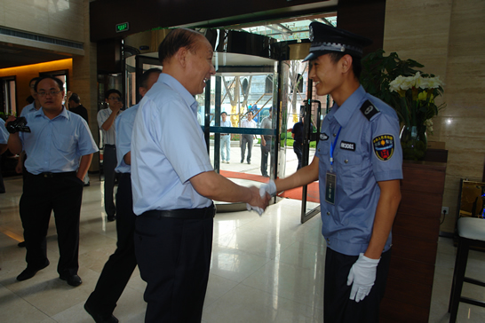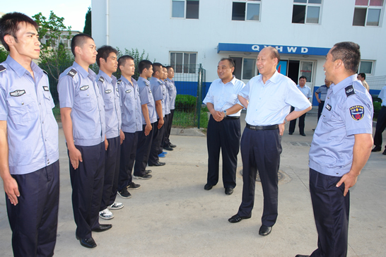 會(huì)后,與會(huì)人員先后到青島分公司駐青島卷煙廠、青島卷煙廠南渠煙庫、遠(yuǎn)洋地產(chǎn)、中鐵置業(yè)有限公司等執(zhí)勤點(diǎn)看望慰問了執(zhí)勤保安員。董事長、總裁荀金慶每到一處,都與隊(duì)員親切握手,詳細(xì)了解家庭情況,囑咐負(fù)責(zé)人一定要做好隊(duì)員的生活保障,讓大家安心工作,并鼓勵(lì)大家要繼續(xù)發(fā)揚(yáng)華威保安的優(yōu)良傳統(tǒng),扎實(shí)工作,樹立起華威保安的品牌形象。