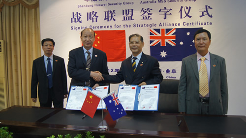 6月17日,山東華威保安集團(tuán)與澳大利亞MSS保安集團(tuán)正式簽署戰(zhàn)略聯(lián)盟合作協(xié)議,分享跨國(guó)公司服務(wù)標(biāo)準(zhǔn),聯(lián)手開(kāi)發(fā)海外安保服務(wù)市場(chǎng),這是我國(guó)保安首次與國(guó)外保安同行進(jìn)行戰(zhàn)略合作,此舉對(duì)于加快華威保安的跨越發(fā)展將產(chǎn)生深遠(yuǎn)的影響。山東華威保安集團(tuán)董事長(zhǎng)、總裁荀金慶、澳大利亞MSS保安集團(tuán)總裁陳喬治分別在協(xié)議上簽字。曲阜市副市長(zhǎng)劉秀廣、曲阜市公安局局長(zhǎng)榮民等領(lǐng)導(dǎo)出席了簽字儀式。