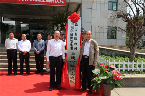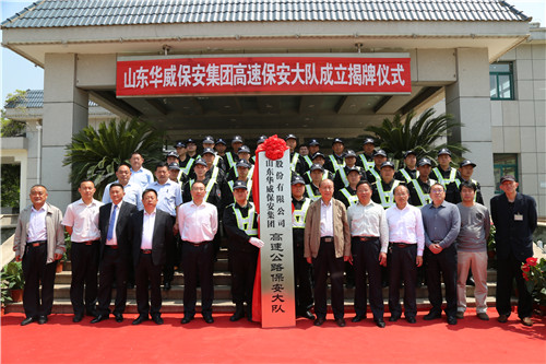 揭牌儀式上,泰安服務(wù)區(qū)李總、集團(tuán)荀董事長共同為華威保安集團(tuán)高速公路保安大隊(duì)成立揭牌。