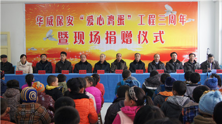 2010年,集團成立了華威愛心基金,發(fā)動員工捐款,開展向農(nóng)村小學(xué)生兒童捐獻“愛心雞蛋”活動。至2016年,共向曲阜58所小學(xué),捐贈愛心雞蛋16100余斤。自2013年起,每年堅持資助曲阜市防山鎮(zhèn)的10名困難小學(xué)生,捐款捐物,并組織夏令營活動,讓受助困難兒童感受社會溫暖,健康成長回報社會。