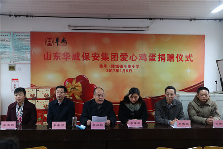 1月5日,冒著料峭的冬雨,華威全體員工堅(jiān)守了七年的“愛心雞蛋”又如約來到了曲阜市陵城鎮(zhèn)莘莊小學(xué)。曲阜市關(guān)工委副主任、秘書長張繼鵬,陵城鎮(zhèn)有關(guān)領(lǐng)導(dǎo),集團(tuán)常務(wù)副總裁楊中河、黨總支副書記李曉虎參加了捐贈(zèng)儀式,代表華威保安集團(tuán)為小朋友們帶來了濃濃愛心。