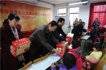 “愛心雞蛋工程”是集團(tuán)公司于2010年發(fā)起的一項(xiàng)獻(xiàn)愛心工程,旨在踐行社會(huì)責(zé)任、關(guān)愛兒童成長,提倡讓孩子們每天能吃上一個(gè)雞蛋,使孩子們能夠健康成長?!皭坌碾u蛋工程”活動(dòng)開展以來,廣大華威員工每個(gè)月都從自己不太多的工資中,拿出至少一元錢,奉獻(xiàn)自己的愛心。7年堅(jiān)守,愛心延續(xù),華威共募集愛心雞蛋捐款15萬余元,使曲阜市南辛、吳村、王莊、石門山、防山、息陬、姚村、小雪、陵城的9個(gè)街道、76所小學(xué)的近3600多名小學(xué)生受益。同時(shí)集團(tuán)又從中選出10名貧困家庭的兒童進(jìn)行長期資助。