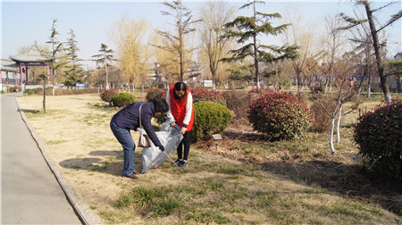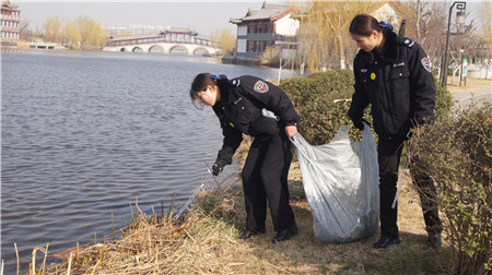 3月8日上午,各位女神在廖河公園集合完畢后正式開(kāi)始了環(huán)保義務(wù)活動(dòng)。她們手持掃把、垃圾鉗、抹布、水桶等,簡(jiǎn)單分工后便投入到緊張有序的工作中。有的邊走邊尋找被丟棄的垃圾、煙蒂,有的擦拭廖河“遺夢(mèng)橋”,有的打掃路面,將整個(gè)廖河公園打掃了一遍,映著滿園的春色,廖河公園更顯得生機(jī)勃勃。