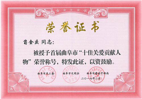 4月19日,曲阜市關心下一代工作會議在市政府召開。會議主要是深入學習貫徹上級精神,總結工作,表彰先進,安排部署當前和今后一個時期工作任務,推動我市關心下一代工作再上新臺階。表彰會上,集團公司在大力推廣和實施的“愛心雞蛋”工程中表現(xiàn)突出,榮獲“曲阜市關心下一代最佳工作品牌”;集團董事長、總裁荀金慶榮獲“十佳關愛貢獻人物”獎。