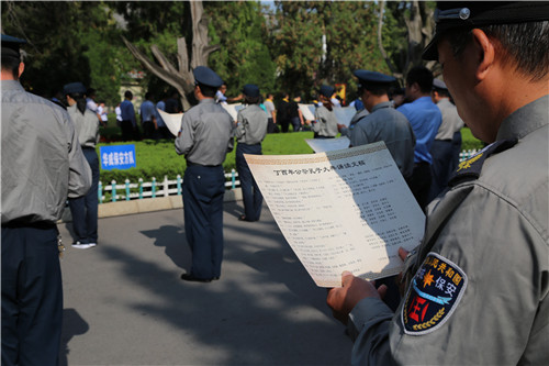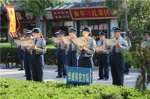 9月28日,值孔子誕辰2568年之際,山東華威保安集團(tuán)的60名保安隊(duì)員在曲阜孔廟萬仞宮墻前,參加第34屆中國國際孔子文化節(jié)群眾方陣經(jīng)典誦讀活動(dòng)。