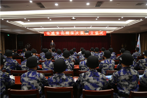 成立儀式上,集團(tuán)黨總支副書記李曉虎宣讀了《關(guān)于組建特保大隊(duì)的決定》及干部任命。集團(tuán)副總裁兼特保大隊(duì)大隊(duì)長顏承國在講話中表示,公司特保大隊(duì)的組建,是樹立華威形象的又一新舉措,有信心帶出一支紀(jì)律嚴(yán)明,業(yè)務(wù)素質(zhì)高,身體素質(zhì)好的鋼鐵隊(duì)伍。