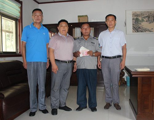 2016年7月23日上午,犬業(yè)公司在利用召開半年總結(jié)會議之際對保安員孔慶祿家庭進行了愛心捐款儀式。