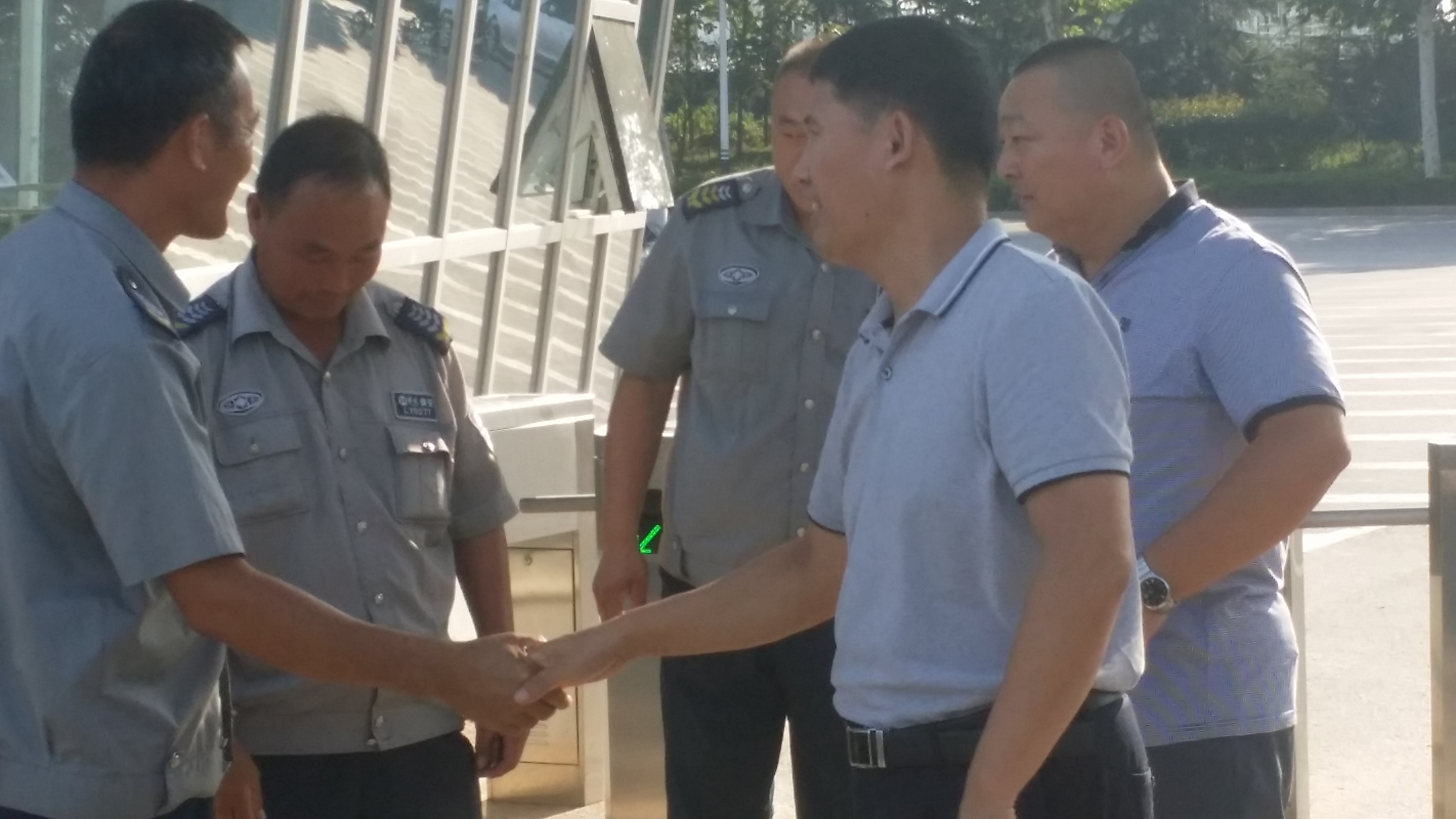集團(tuán)公司監(jiān)事會主席孫凡華、培訓(xùn)中心副主任張濤于8月30日下午到臨沂分公司檢查指導(dǎo)工作。孫主席在分公司總經(jīng)理孔德生的陪同下先后到臨沂金華奧迪4S店、臨沂眾泰汽車制造有限公司保安項(xiàng)目部看望一線執(zhí)勤保安隊(duì)員。