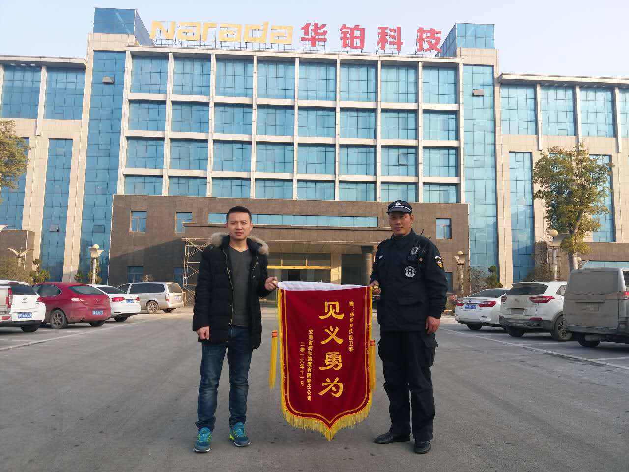 山東華威保安集團(tuán)菏澤分公司駐安徽華鉑再生資源科技有限公司項目部保安隊員王金輝,于11月25日晚8時左右,在華鉑公司一號門執(zhí)勤時發(fā)現(xiàn)門外有一輛載有電池的白色半掛車(皖K...