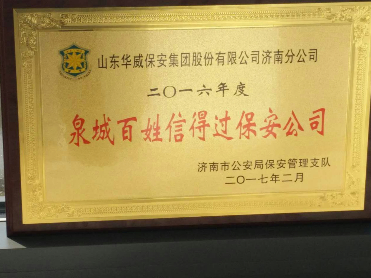 濟(jì)南分公司連續(xù)兩年獲得“泉城百姓信得過保安公司”...