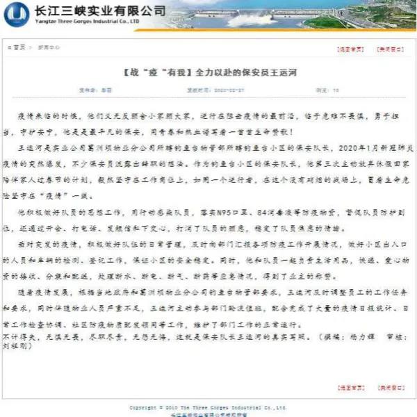 長(zhǎng)江三峽實(shí)業(yè)有限公司官方網(wǎng)站刊登報(bào)道